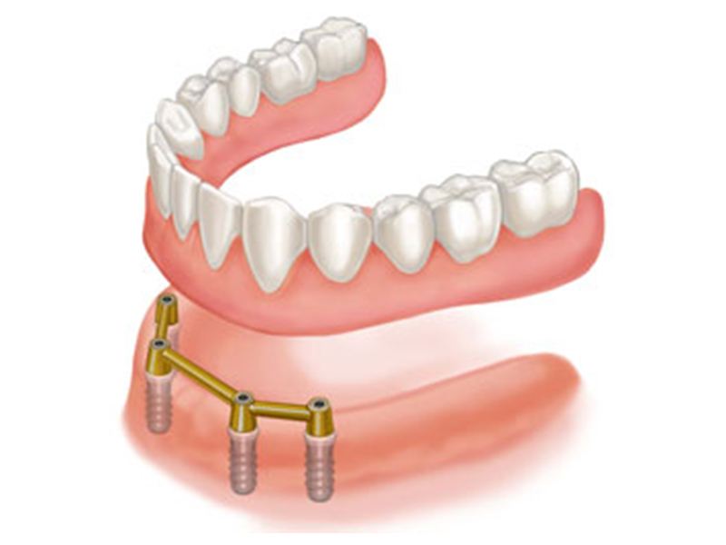 Ook op implantaten kan een prothese vervaardigd worden om meer houvast te bekomen en aldus het kauwcomfort te verhogen.